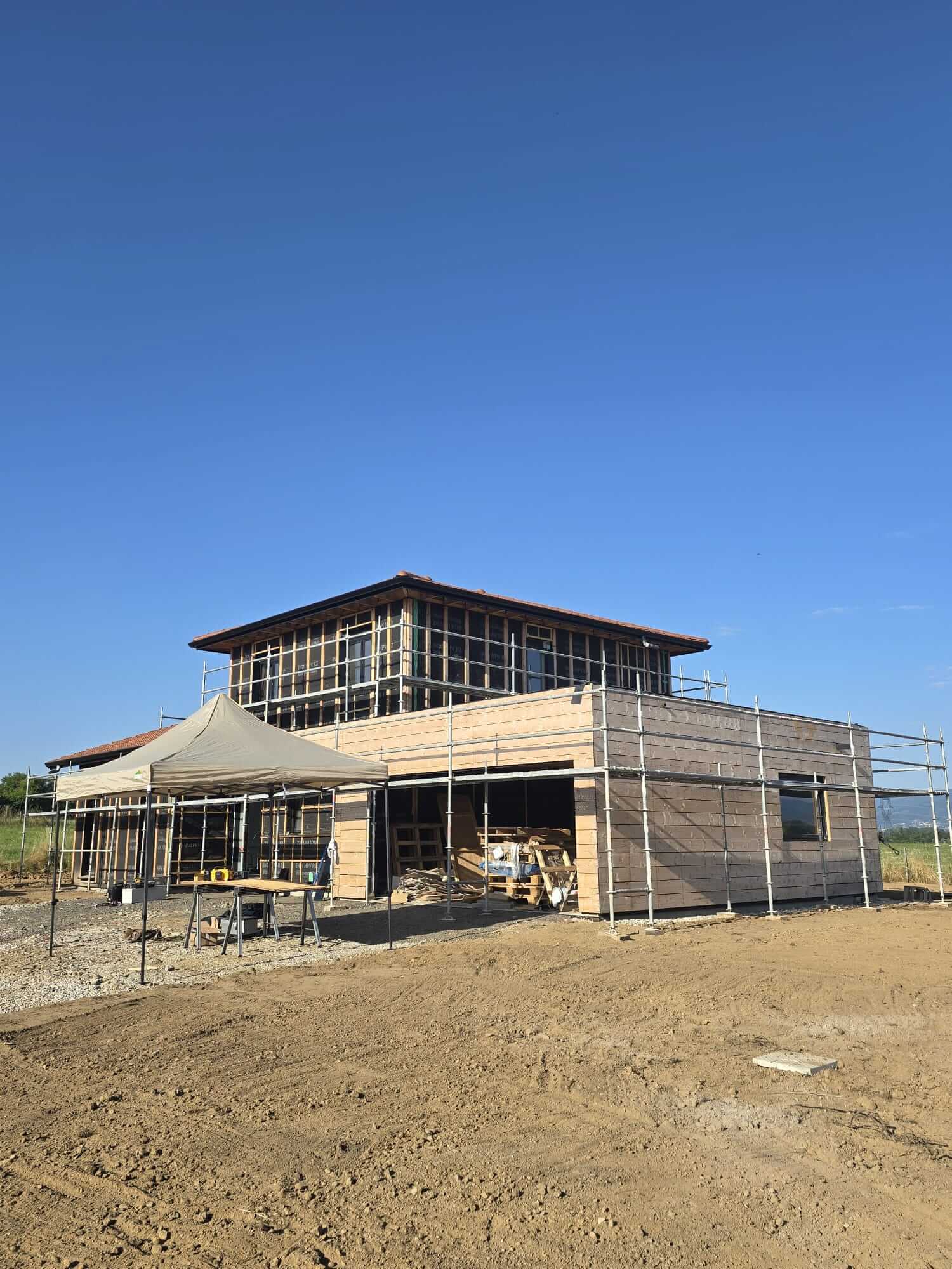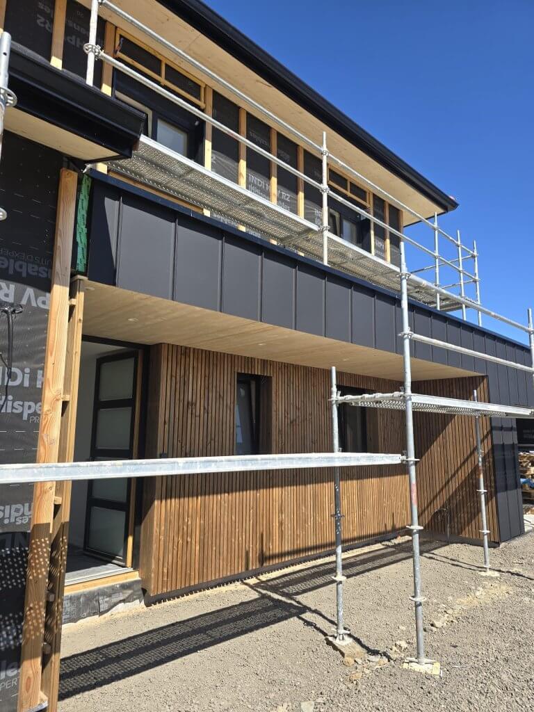Dans le cadre de la construction de sa maison à ossature bois, notre client souhaitait réaliser un habillage extérieur en bardage mixte bois et métal, afin d’allier esthétisme contemporain, durabilité et protection optimale de la façade.